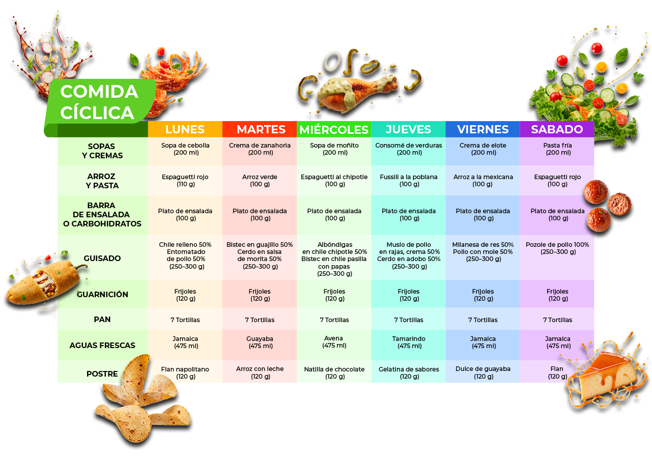 El mejor momento para mejorar el comedor de tu empresa es hoy. Agenda una prueba de menú sin compromiso y conoce nuestros guisados, ensaladas y opciones completas que cumplen con la Norma 251 y con los estándares que tu planta necesita.